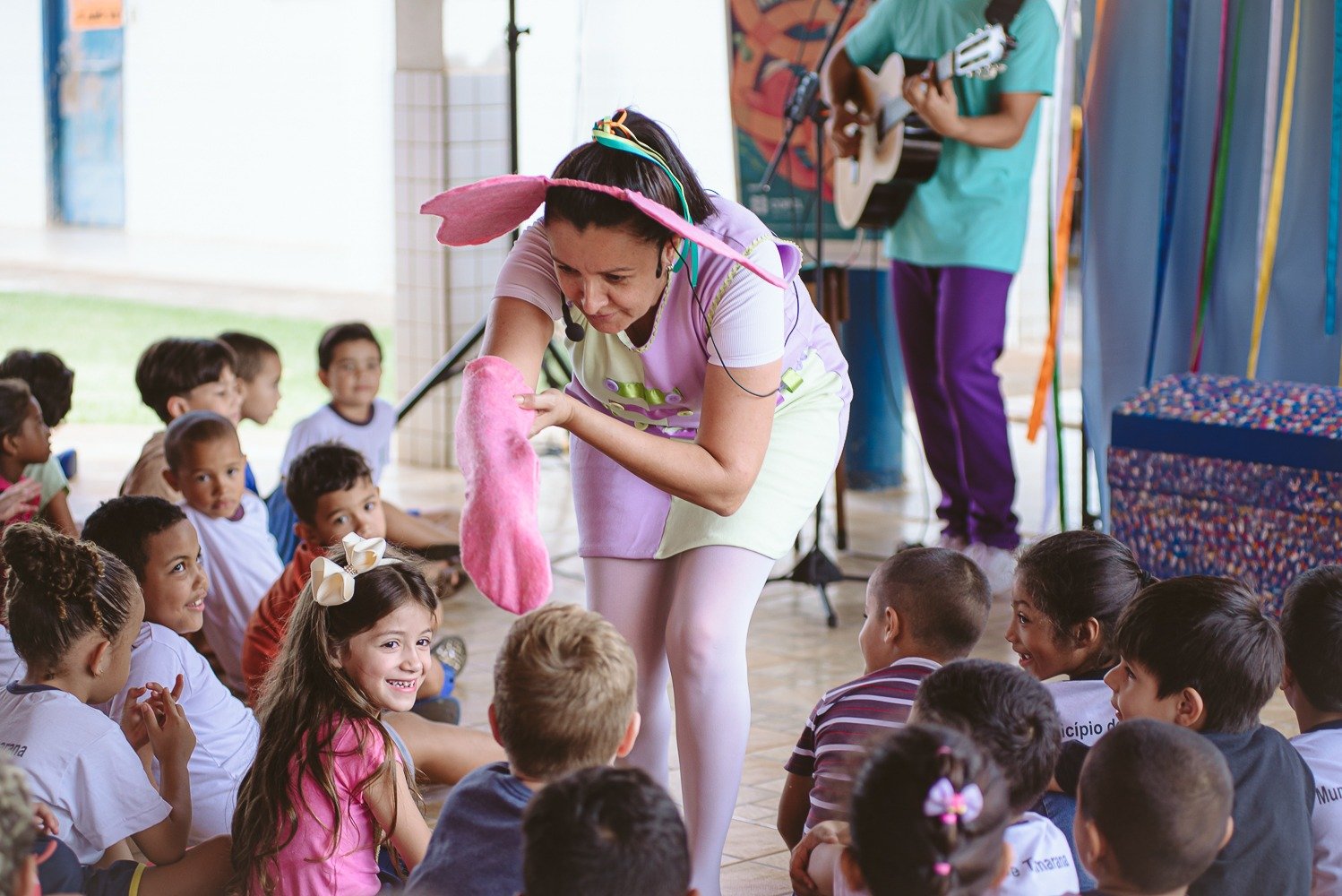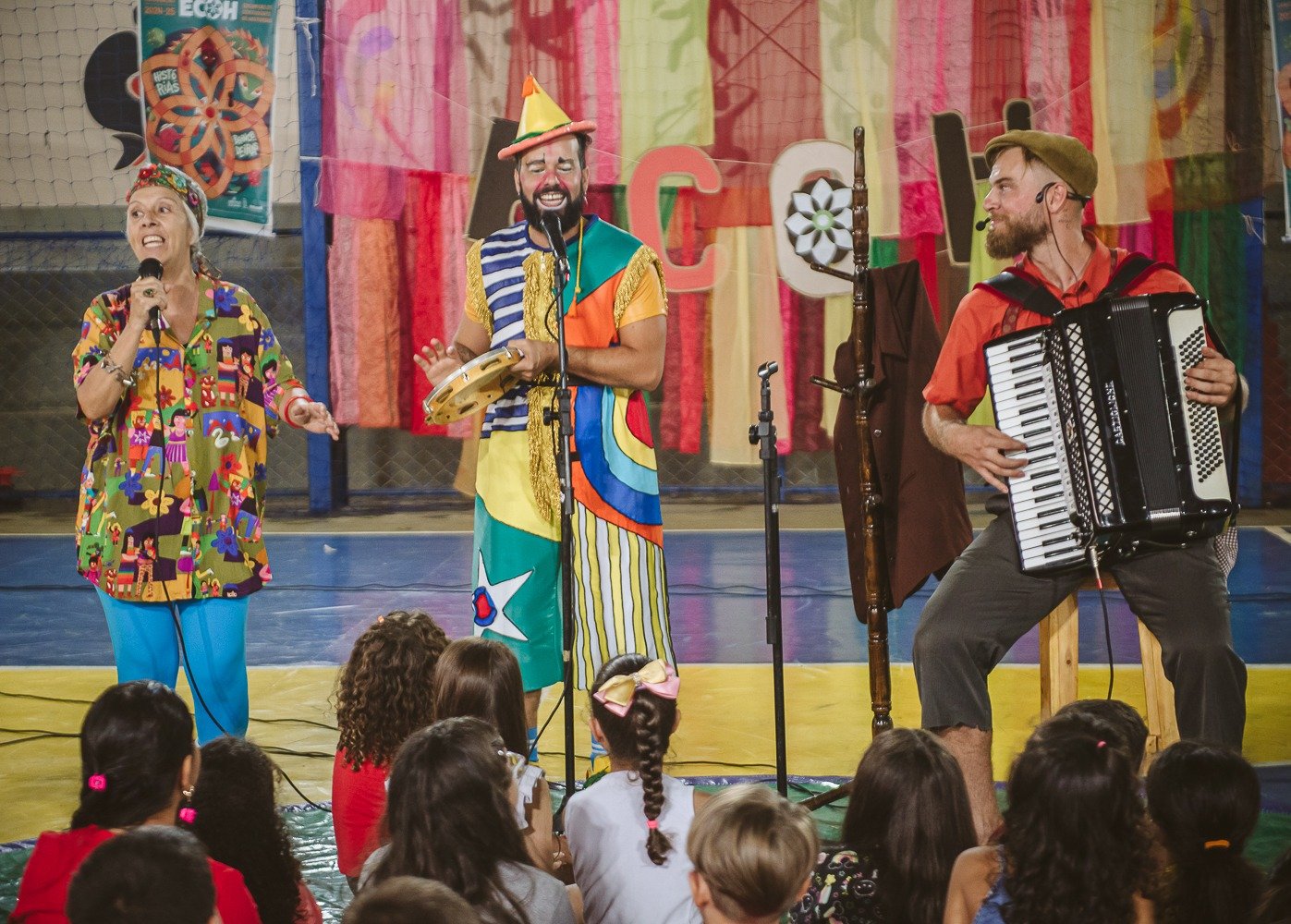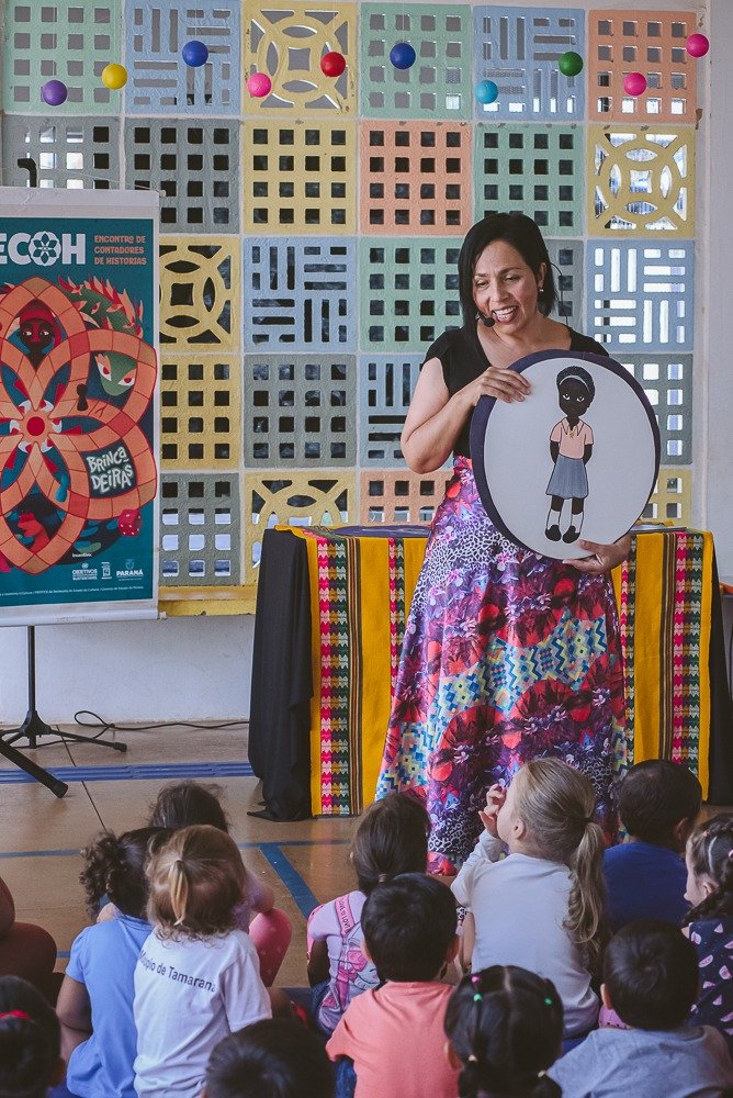 A programação nas escolas municipais envolve alunos da Educação Infantil, do Ensino Fundamental I e da APAE. Os artistas convidados exploram temas fundamentais com delicadeza. Palhaço Arnica (Luis Henrique Bocão) apresenta a história de uma formiga que transforma um jardim em universo de descobertas, celebrando o poder da imaginação. Palhaça Adelaide (Juliana Galante) compartilha narrativas sobre a origem da chuva, do sol e do arco-íris, com temas como liberdade, empatia e amor-próprio. Dani Fioruci traz contos da tradição popular com personagens inusitados — uma velha que fia, um rapaz entre a sabedoria e o ridículo — sempre com leveza e participação do público. Edna Aguiar apresenta “Preta do Leite”, costurando histórias afro-brasileiras e mitos de origem, como a separação do céu e da terra e os guardiões da criação do mundo.